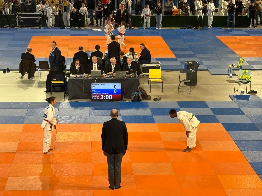 Lilly-Marie Griesinger (U15) kämpfte in der noch (für sie) etwas ungewohnten höheren Gewichtsklasse bis 48 kg. Dennoch ging sie beherzt in ihre erste Begegnung gegen Fammy Hendricks (Niederlande) und konnte bereits nach kurzer Zeit mit einem sehenswerten Seo-Nage den Kampf mit Ippon für sich entscheiden. In Ihrem zweiten Kampf gegen Robin Voogt (ebenfalls Niederlande) zeigte Lilly einen weiteren guten Kampf und siegte nach Ende der regulären Kampfzeit mit zwei Yuko Wertungen. Im Kampf um den Pool Sieg musste Lilly nun gegen eine starke Kämpferin aus Portugal (Jubaida Jamanca) antreten, den sie aber leider knapp mit einer kleinen Wertung nach Ende der Kampfzeit abgeben musste. Im darauffolgenden Trostrundenkampf gegen Sarhane Kenza (Belgien) war Lilly eigentlich die dominierende Kämpferin, konnte aber keine entscheidende Wertung in der regulären Kampfzeit erzielen. Im golden Score hatte dann ihre Gegnerin heute das Quäntchen Glück auf ihrer Seite und konnte den Kampf mit einer kleinen Wertung für sich entscheiden. Somit konnte sich Lilly heute nicht weiter nach vorne in die Top Platzierungen kämpfen. Dennoch hat Lilly mit zwei Siegen und zwei knappen Niederlagen wieder ein gutes Turnier auf internationaler Bühne gekämpft bzw. gezeigt! Aber allein schon in dieser besonderen Atmosphäre kämpfen zu dürfen, sollte für alle jungen Nachwuchs Kämpfer/innen ein besonderes Erlebnis gewesen sein!