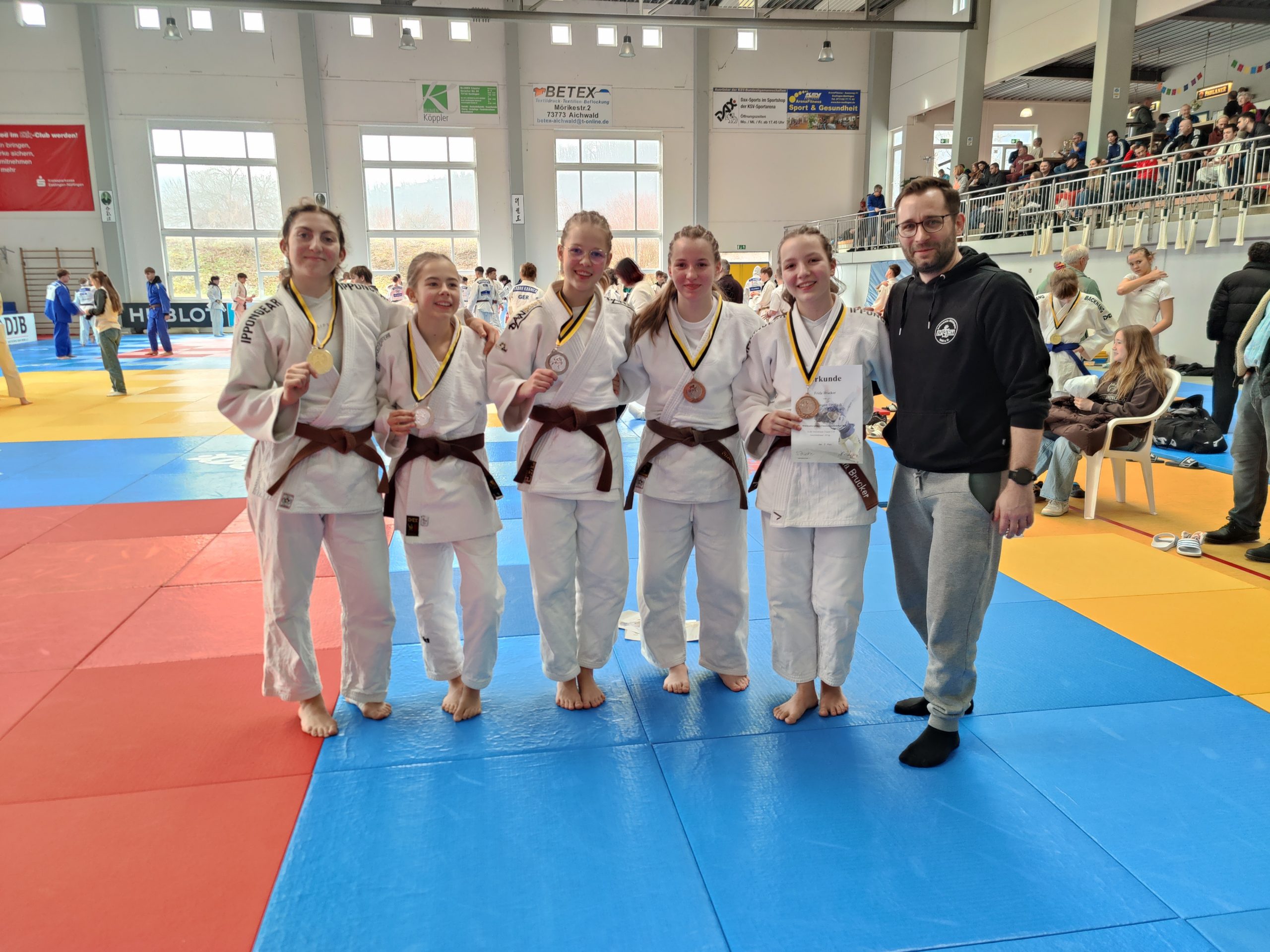 Frida Brucker (bis 63 kg) startete mit einer Niederlage im Boden, steigerte sich jedoch im weiteren Verlauf deutlich. Mit zwei vorzeitigen Siegen durch Beintechniken erreichte sie das Halbfinale, wo sie sich einer Selbstfalltechnik geschlagen geben musste. Am Ende stand ein dritter Platz – bemerkenswert auch deshalb, weil sie sich nach einem Gewichtsklassenwechsel in der neuen Kategorie behauptete.